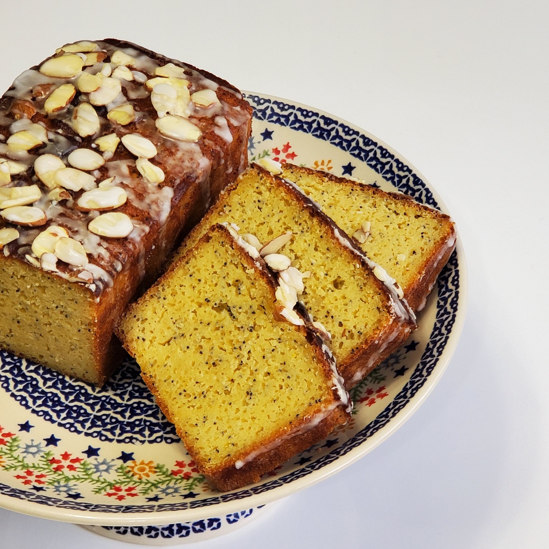 Real Lemon juice infused bread topped with sweet lemon glaze and sliced almonds. Great for breakfast or dessert